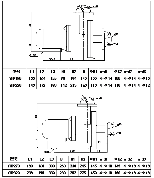 | YHP270 | 250~450 | 0.5 | 0~120 | 65 | YD100L2-6/4-1.5/2.2 | 940/1420 |